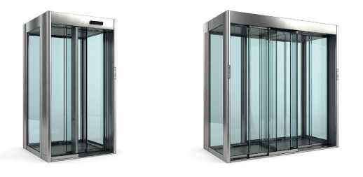 Cabinas rectangulares simples o dobles equipadas con puertas correderas rápidas, asegurando un alto nivel de control de acceso. Son particularmente adecuados para sitios públicos.