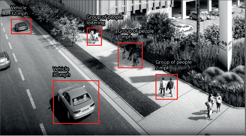 OMNIA VCA, dentro de la interfaz OMNIA, procesa los videos, identifica los objetos en el flujo de video (personas, vehículos y otros elementos) y los indexa para que las grabaciones puedan ser identificadas y analizadas fácil y rápidamente para varios propósitos: